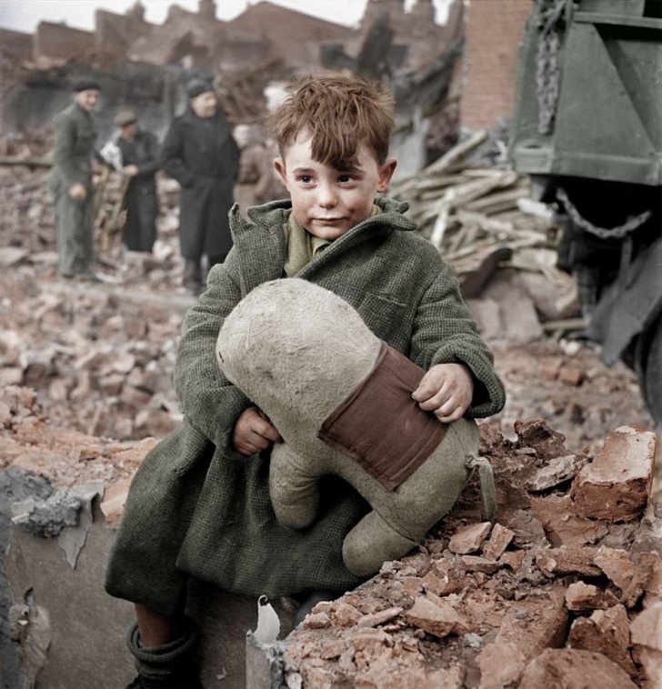#13. Abandoned boy holding a stuffed animal, London 1945