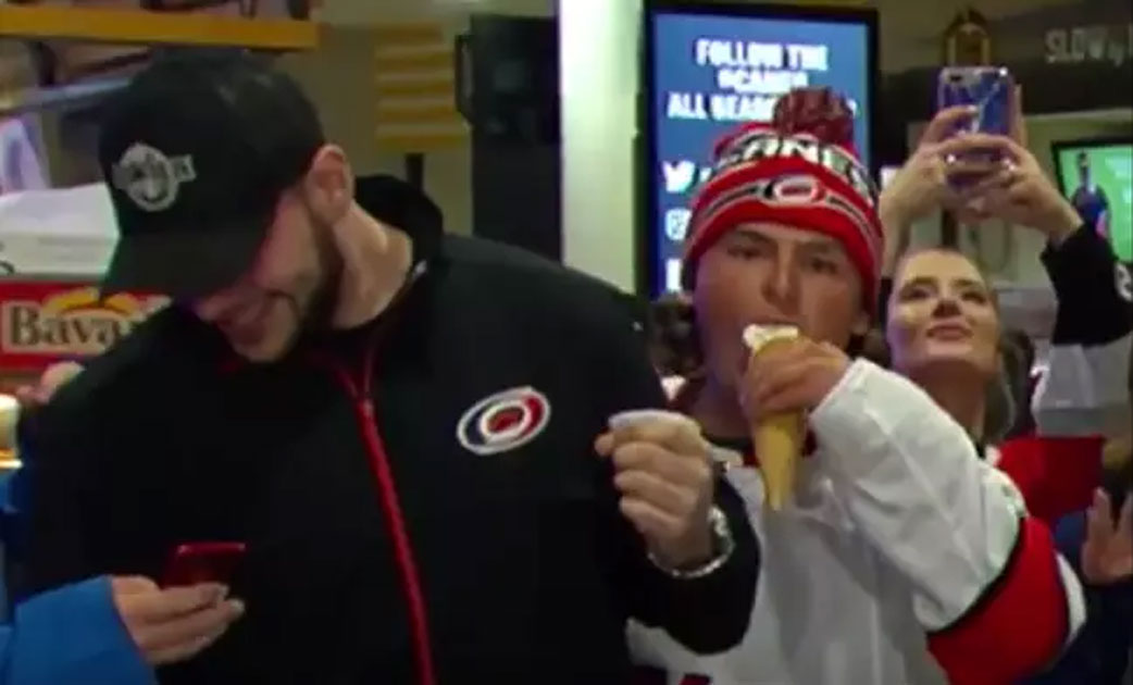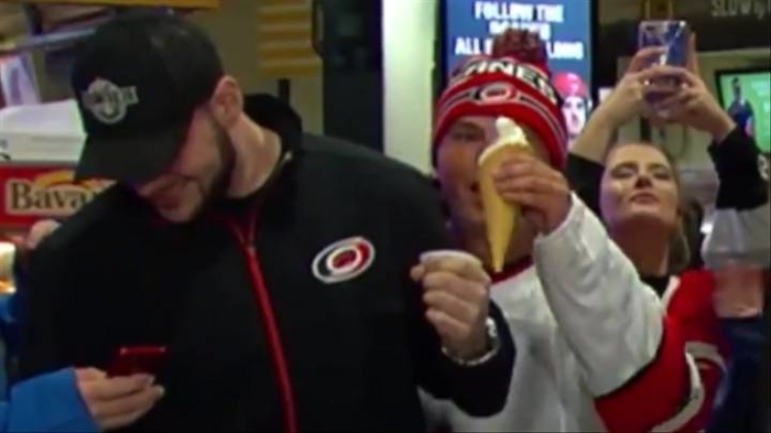 The hilarious video was tweeted by Carolina Hurricanes fan Brianna Airington has been watched over three million times. In the video, Davis tries to return the cone but he realizes that he may get caught and walks away from there.