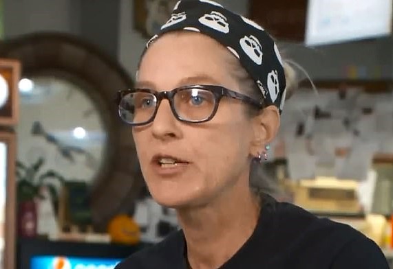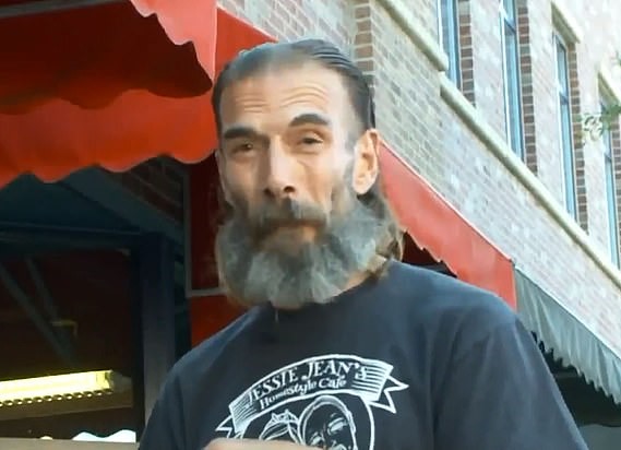 The incident was captured on camera by Anna Davidson, the co-owner of Jessie Jean’s Coffee Shop where the homeless man in question helps around to earn his meals.