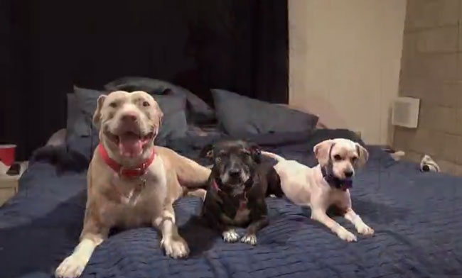 Eldad said: Lisa’s Pit Bull mixes – Lola and Frankie, decided to help Benji overcome his fears, and the result will make you so happy!!!”