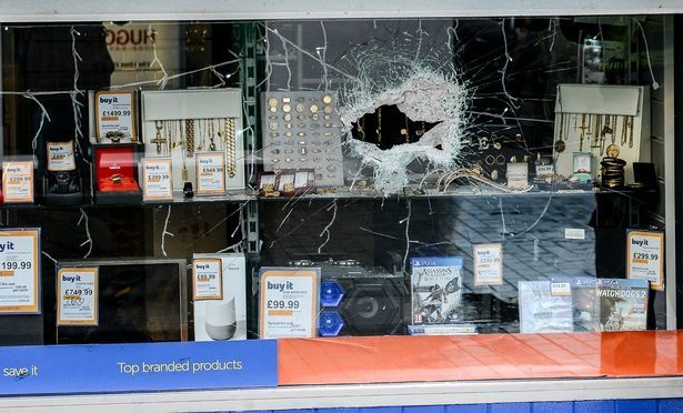 One of them get off the bike and started smashing the jewellery shop window with an axe while the other one was waiting for him on the bike to finish his job.