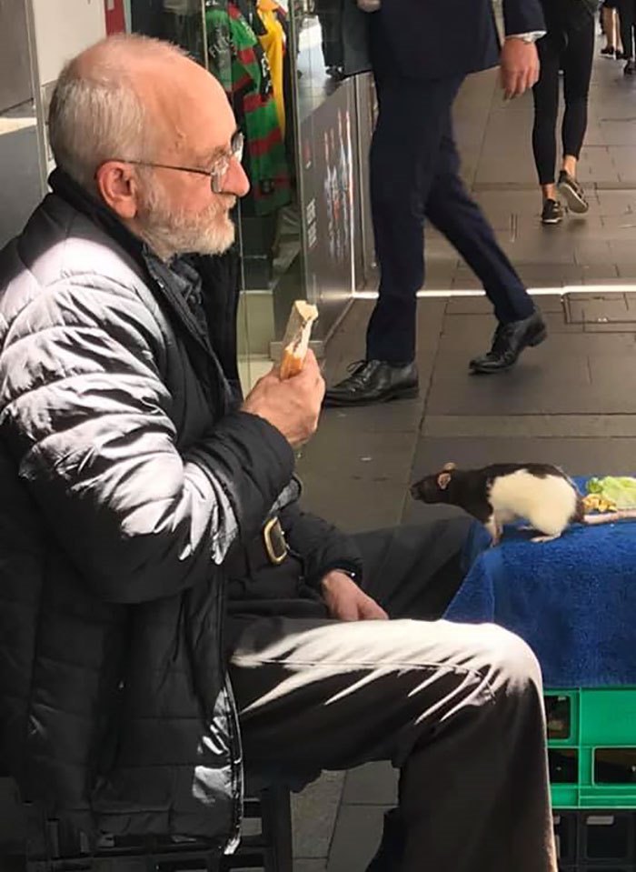 59-year-old homeless man Chris has been at his spot in Sydney, Australia, for many years. By his side, there had been a pet rat named Lucy who helped Chris get through rough days.