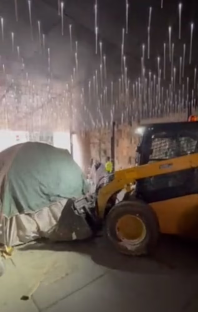 Fortunately, the operation came to a halt after homeless advocates who had gathered at the scene heard the man yelling for help as the machine began clearing the tents from the sidewalk.