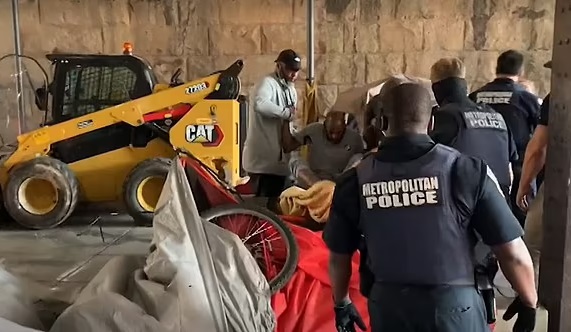 The incident took place at a homeless encampment under an overpass on L Street in Washington DC where the City’s Department of Health and Human Services workers were instructed to clear the area.