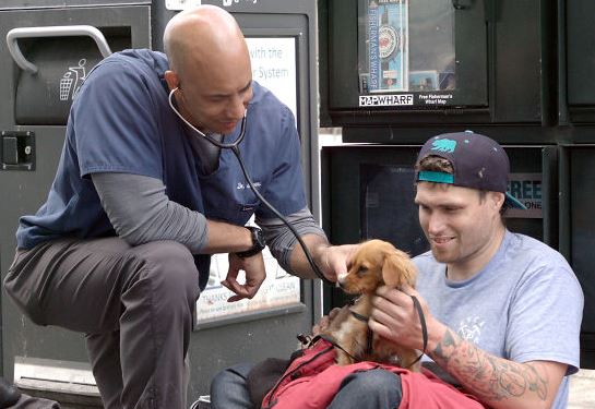 The 49 years old man walks around the city to find needy people and help them and their animals. He checks them up and gives them the medical treatment they need.