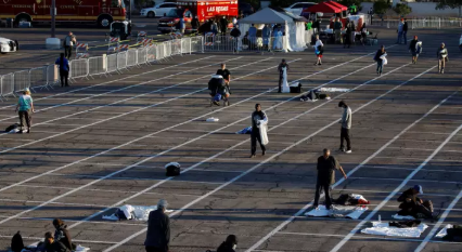 Las Vegas, Nevada has painted the social distancing barriers in the carpark on which the rough sleepers have to sleep after the main shelter in that area was closed.