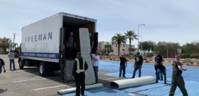 Initially, the carpark was laid 24,000 sq. ft. of carpet to be used as sleeping mats. However, it was removed soon, which meant 117 individuals had to sleep on the concrete floor only that had painted lines to make sure the people stayed 6 flex away from each other.