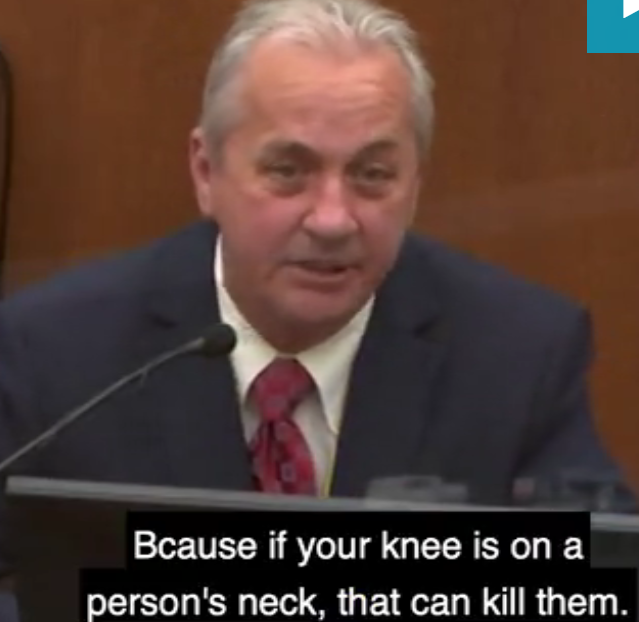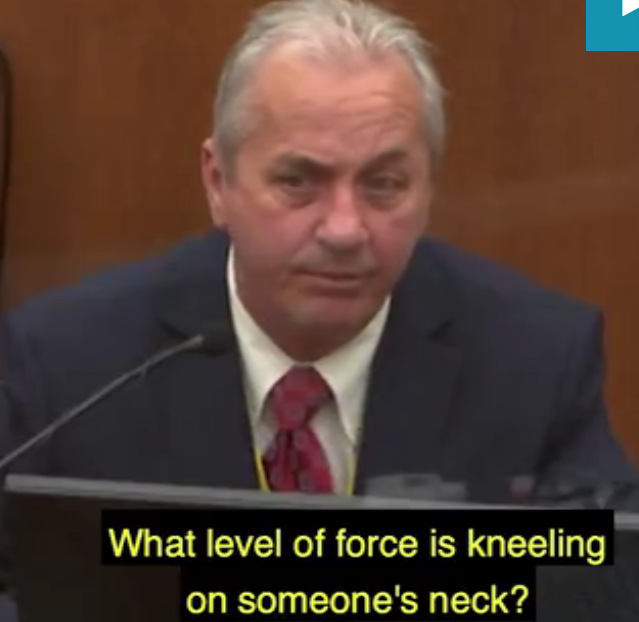 He continues, adding that in his work force he had never been trained to “kneel on the neck of somebody who’s cuffed and in the prone position.”
