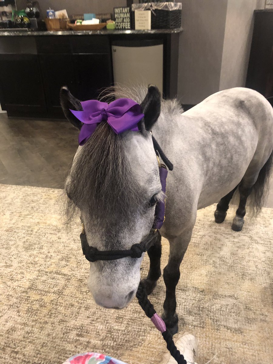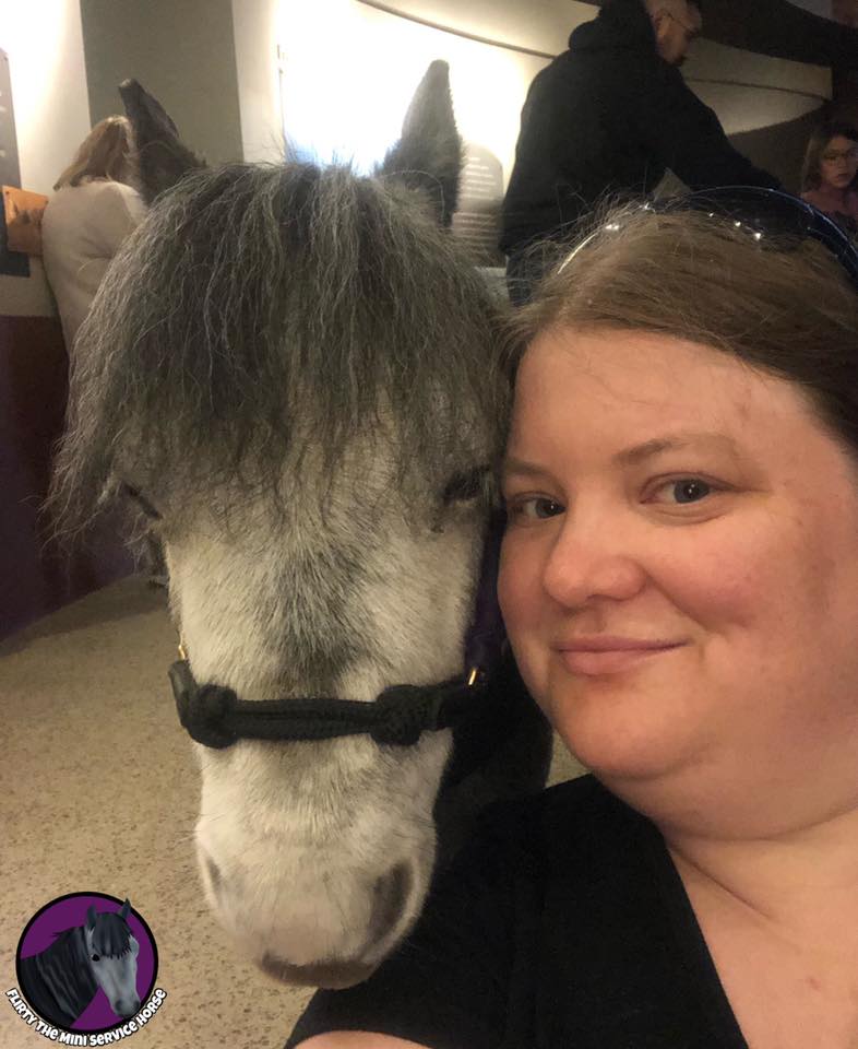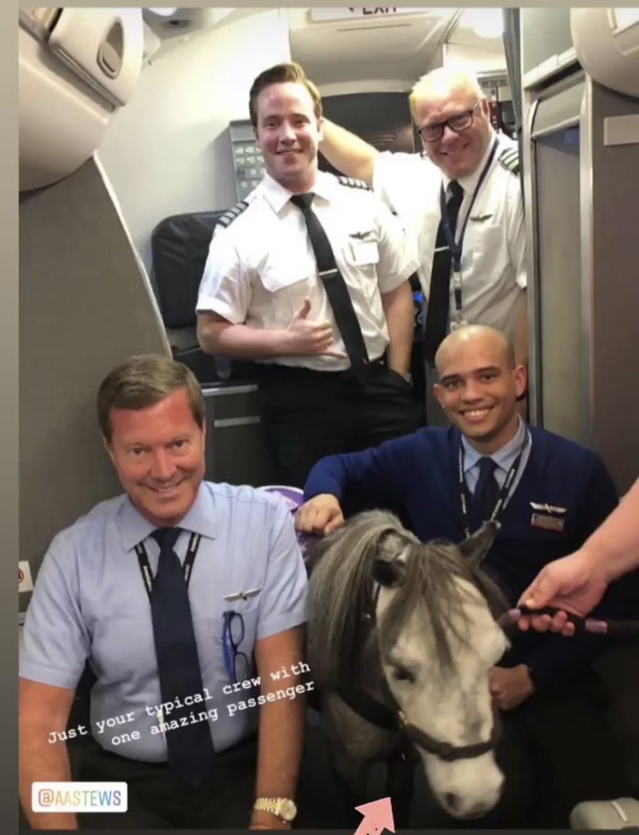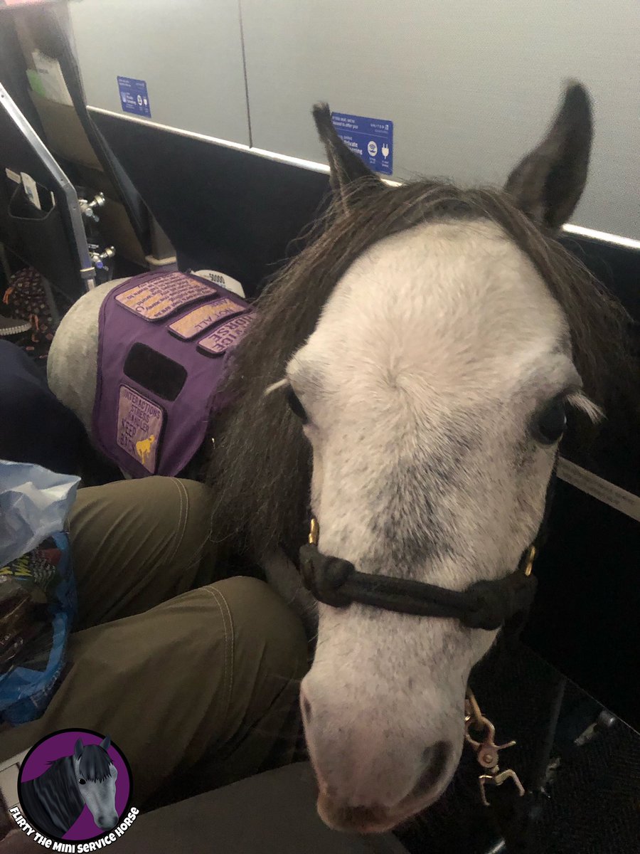The miniature horse in this story goes by the name of Flirty The Mini Service Horse and belongs to Abrea Hensley who was visiting her aunt on the day she flew together with her horse.