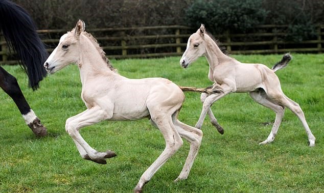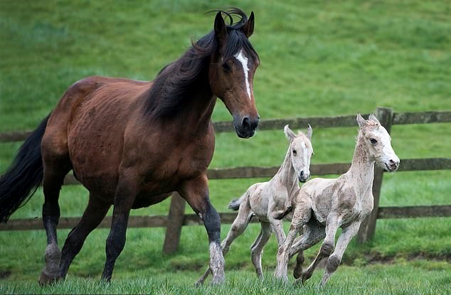 And 18 months later, she was left stunned after the same mother horse, named Destiny, gave birth to another set of twins, defying odds of one million to one!