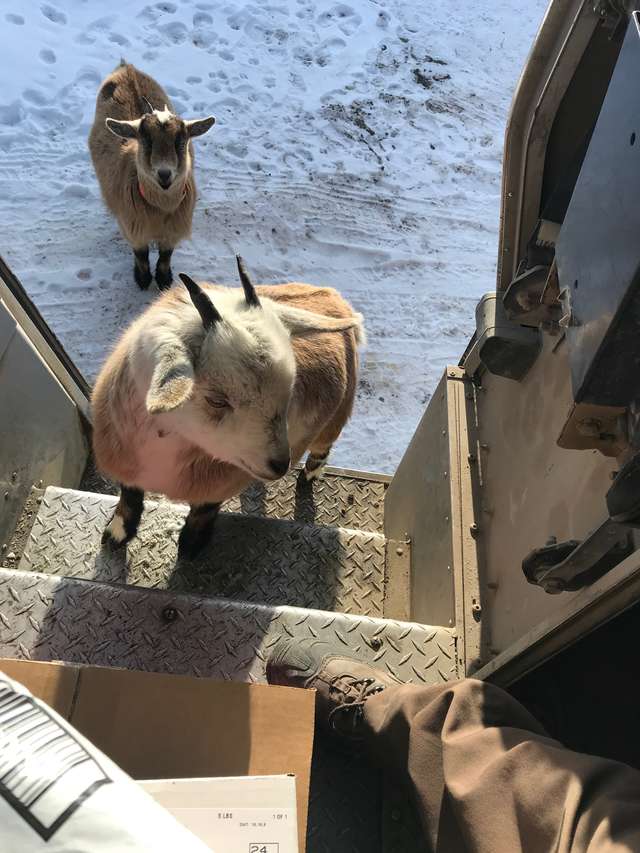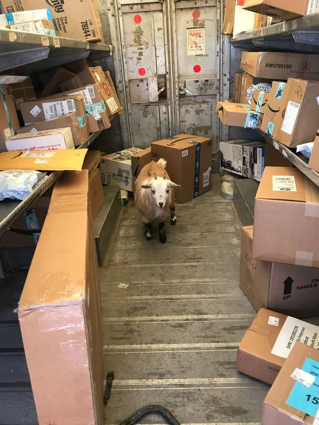 It took some bonding with the goats, but the deliveryman eventually managed to convince the animals to exit his truck so that he could continue with his deliveries.