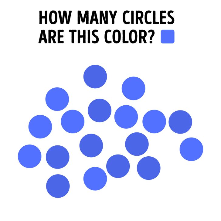 How many circles do you see of this particular shade of blue. Remember, look at the image down below with due concentration. There is definitely more than one shade of blue here. So, can you figure out which circles correlate to the blue in question? Come on, you’ve got this on your fingertips.