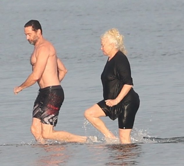 Hugh Jackman went full PDA with wife Deborra-Lee Furness as the longtime couple took to the beach to enjoy an icy swim.