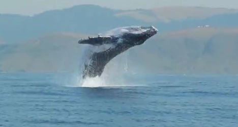 The group spotted a humpback whale jumping out of the water several times while they were hunting for the fish.