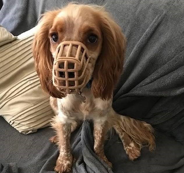 After the spaniel devoured several objects that could cost him his life, the couple decided to get him a muzzle only for their plan to backfire as the dog chewed through it and ate the guard.