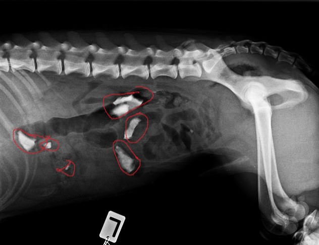 “Once the foreign bodies are located the intestines are incised, the foreign body removed and then the intestines are stitched back together.”