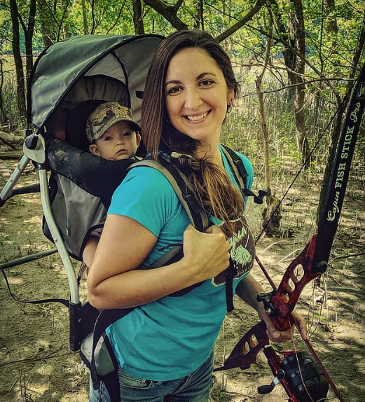 But what if I tell you there is a hunter mother who takes her 9 months old daughter on every hunt with her and let her watch while the baby is sitting in her bag pack.