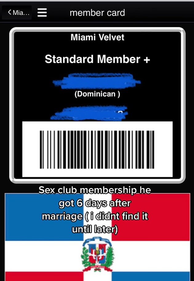 The furious wife also discovered that her husband had a sex club membership in Miami! Learning he joined only six days after they tied the knot just rubbed salt into the wound.