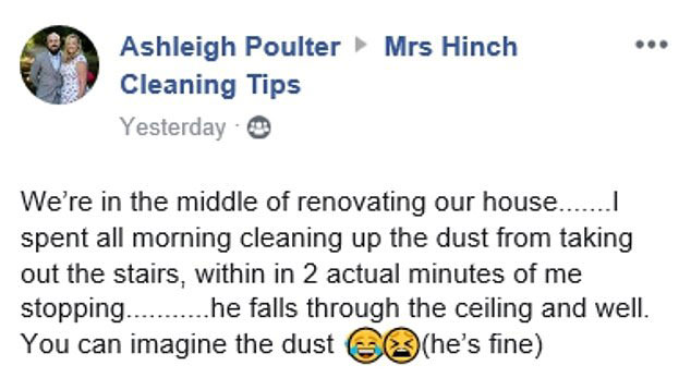 His wife shared the hilarious incident on the Mrs. Hinch Cleaning Tips Facebook group.