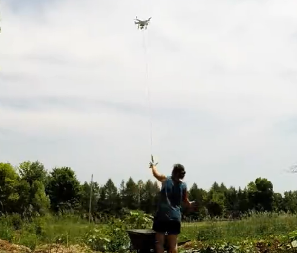 He brings out his drone, ties an ice cream to it and flies thee frozen snack to his wife who he had known would love the ice cream in the sun.