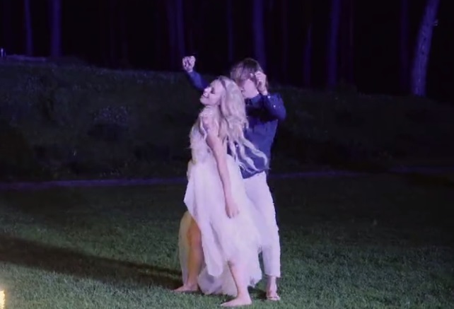 There, the wife is joined by her husband, who, like her, is barefoot. The husband approaches his wife and the two begin dancing passionately as their favorite song kicks off.