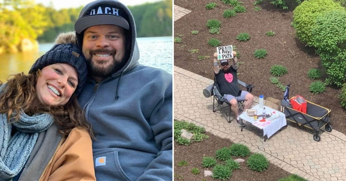A loving husband has gone viral after pictures of him supporting his wife, who is having a high-risk pregnancy amid the pandemic, by holding a vigil in front of her hospital window have made rounds on the internet.