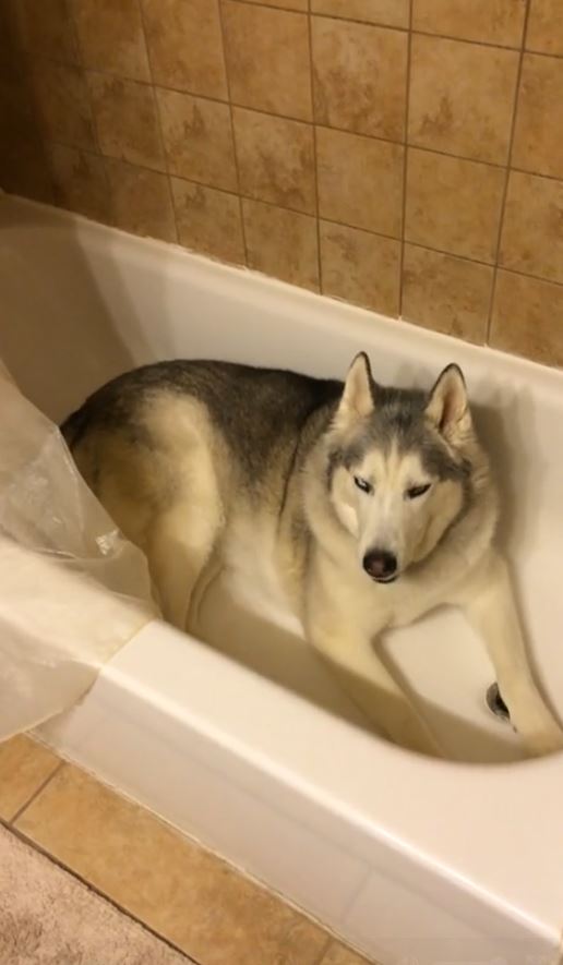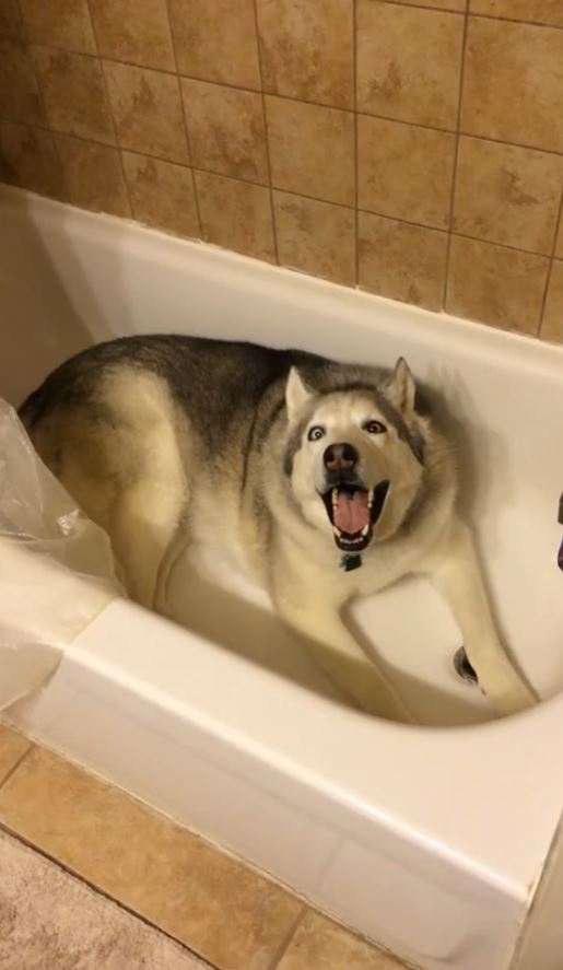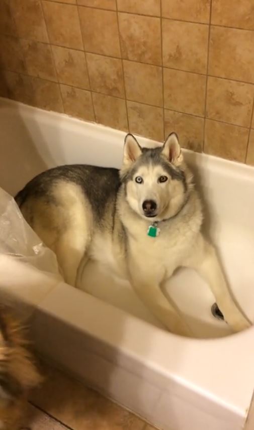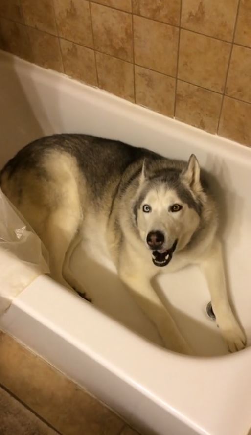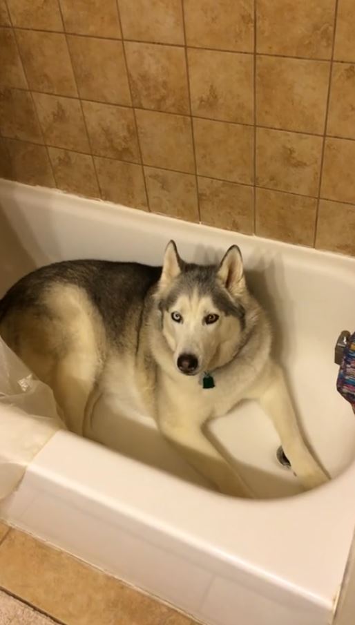 Meet Zeus, he is a seven-year-old Siberian Husky and he lives life on his own terms. There is no one who can make him do something he does not wish to do and today he does not wish to get out of this bathtub.