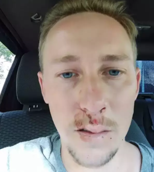 When he opened the door to throw up, he seemed to have caught the ground with his face and no hands.