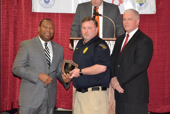 Franco Fuda, seen in the middle in his uniform in the above picture, is currently serving as the police chief in Bonneau, South Carolina. When he answered his door on Monday, the last thing he was expecting was a sudden and violent attack by a former convict.