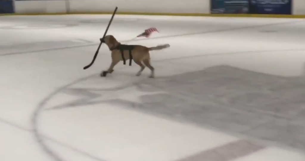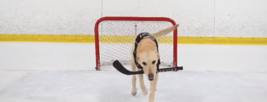 There are videos where he is seen zipping down the ice with his hockey stick in his mouth and other new stunts.