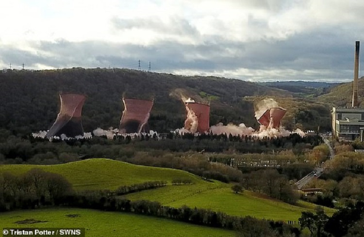 In just four seconds, the 400-foot towers collapsed in an impressive cloud of dust. The station served to provide electricity for 46 years and dominated the heart of Ironbridge Gorge.