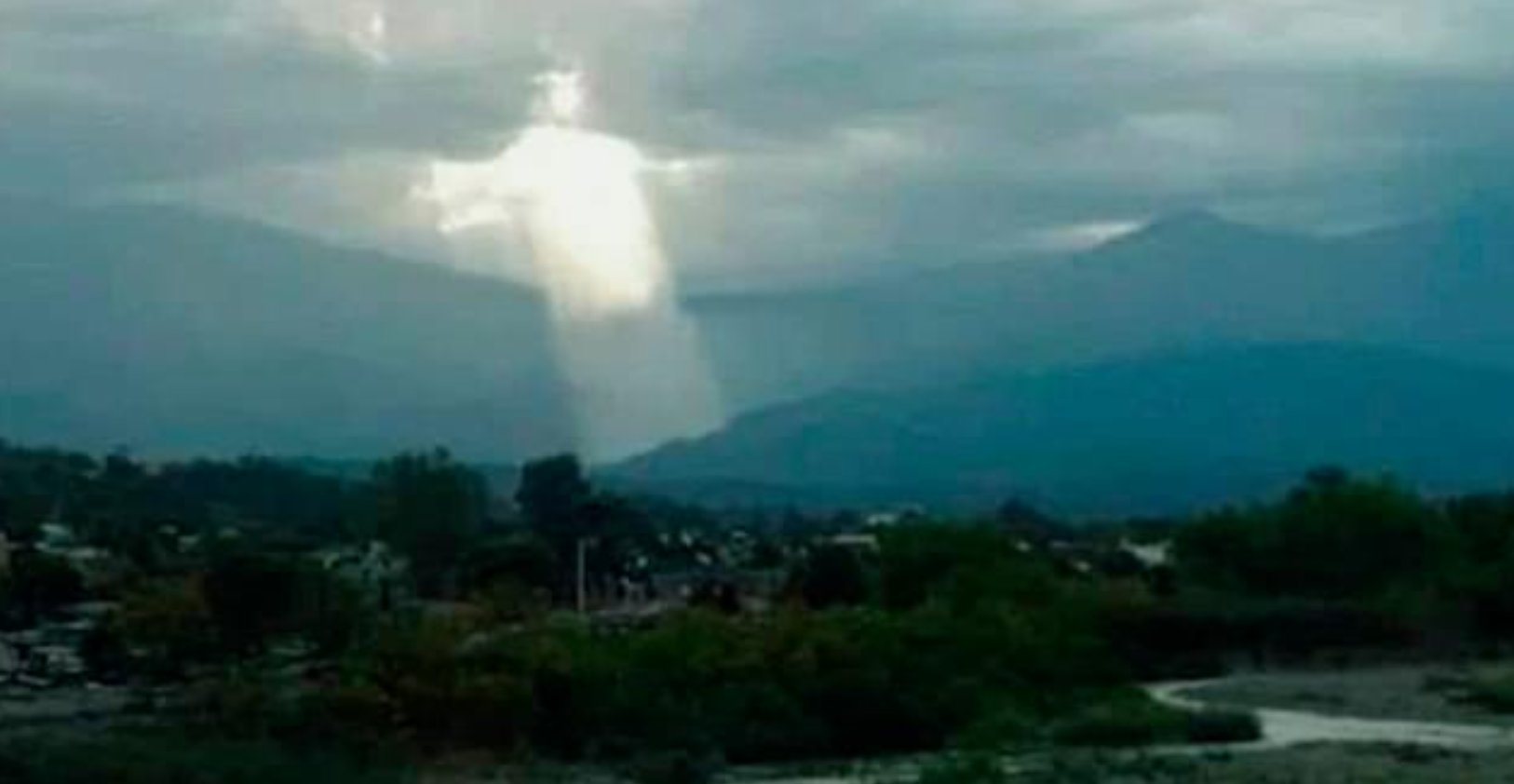 A Christ-like figure appeared forming in the sky as the sun rays passed through the clouds over Argentina.