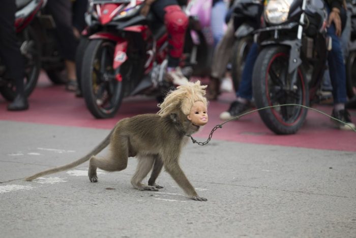 “These monkeys are often tortured to learn to stand on their feet like humans, being hung just so their toes touch the ground for hours, beaten and starved so that they ride a bicycle or stilts on demand.