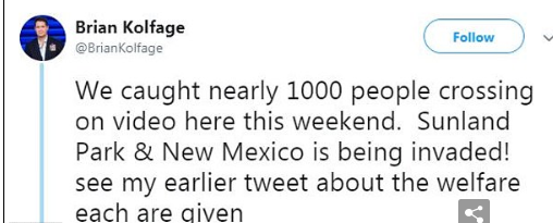 Brian Kolfage reports that the video recorded pictures of roughly 1,000 immigrants flooding over the border illegally in Sunland Park, New Mexico. This is the place where his project has completed the construction of portions of a border wall.