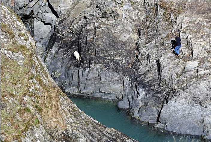 What you can witness in the photographs are the frames of this man walking along the cliff top between Aberieddy and Porthgain in Pembrokeshire and clambering down right to this animal.