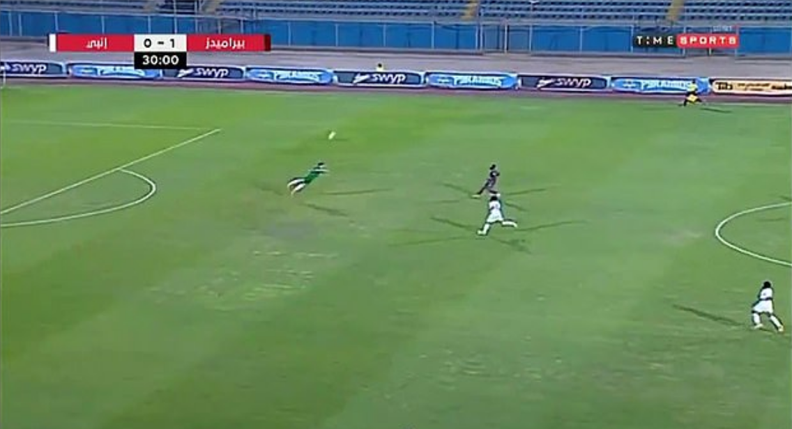 Enppi Club’s Mahmoud Gad makes an incredible recovery that appeared almost impossible to attain in Egyptian Premier League against Pyramids which was recorded on a video posted on Twitter.
