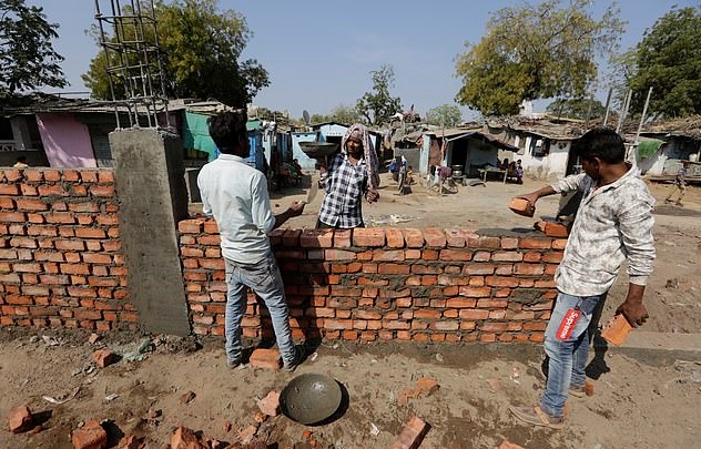 India has started building large brick walls to block the view of the slums ahead of President Donald Trump’s visit to Ahmedabad on Monday.