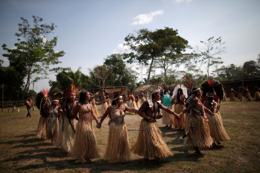 A number of people from Shanenawa tribe gathered in the village of Feijo, located in the West of Brazil, alongside the border with Peru, to perform a ritual.