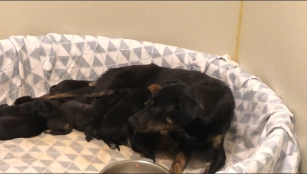 The injured dog, who had given birth to 13 puppies, then alerted Donna Lochmann and colleagues to her pups.