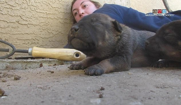The heartwarming rescue operation took place in Phoenix, Arizona, where the Arizona Humane Society staff were alerted about stray dogs entering a hole underneath the house that was about to be demolished.