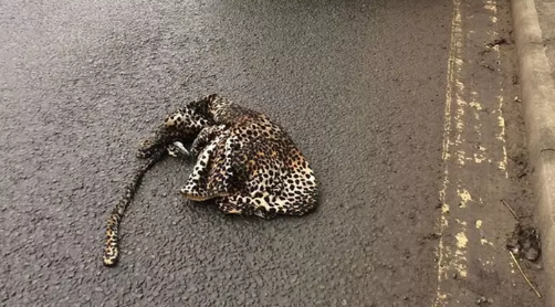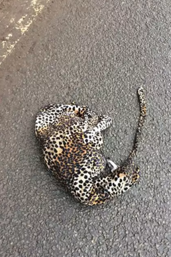 A man drove and passed what he figured out to be a dead leopard.