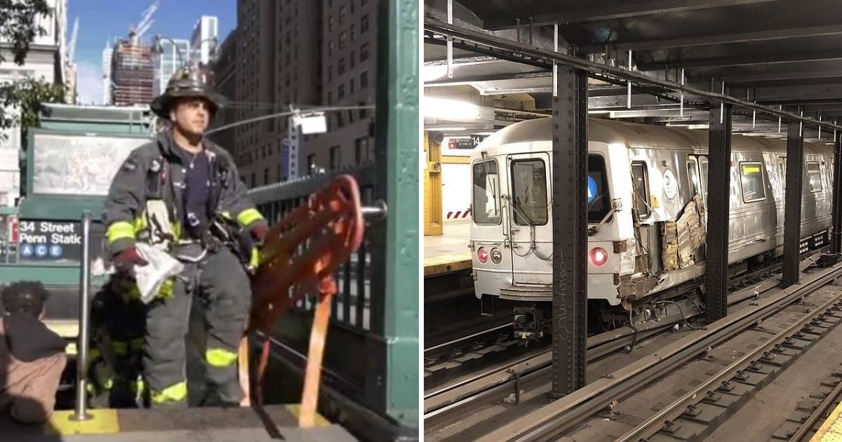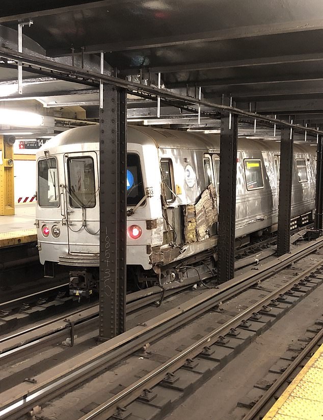 According to the New York Daily News, the train derailed after a homeless man sabotaged the track by placing metal clamps on it. He allegedly found those items at a pile of construction materials located at the subway station on 14th Street.