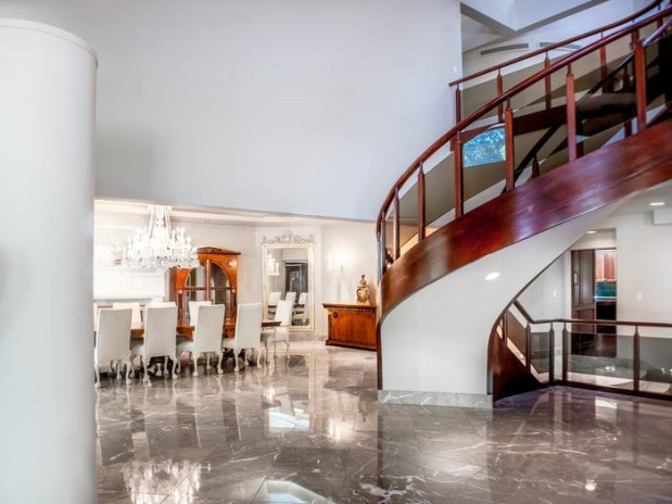 The home is ideal for someone who loves having a lot of people around. There are indoor and outdoor basketball courts that allow owners to stay active without having to go out.