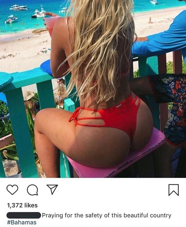 Another Instagrammer was slammed after posting a photo of her backside in skimpy bikini along with the caption: “Praying for the safety of this beautiful country #Bahamas”