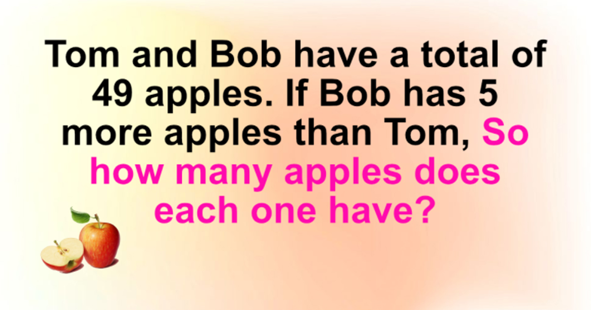 As a whole, Tom and Bob have 49 apples in total. If Bob actually has five more of those apples than his friend Tom, how many apples do you think each person has! Sounds tricky right? Well, if you actually think logically then there’s nothing to worry about.