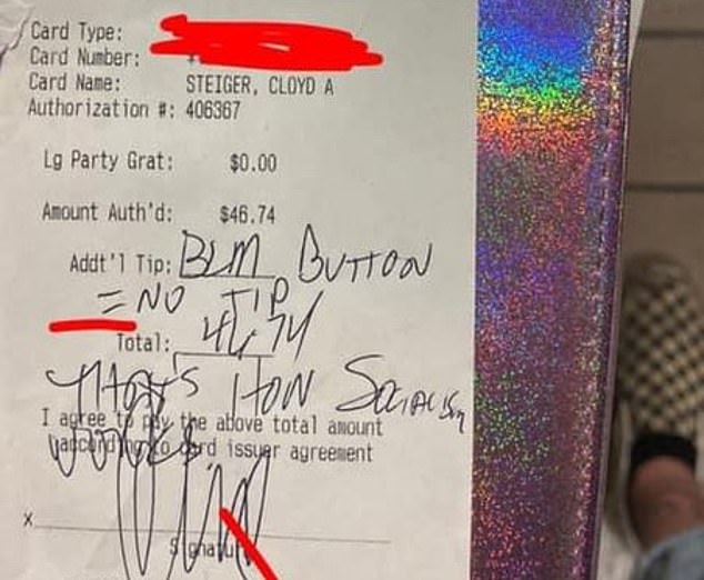 “You reported to our AGO investigators, Ms. Roe and Ms. Muigai, that you were offended by the pin but did not verbalize your concern to Ms. Vincent and remained cordial to her during your stay. You paid your bill with your credit card and wrote on the receipt in the tip line, ‘BLM button = no tip. That’s how socialism works,’” the letter read.