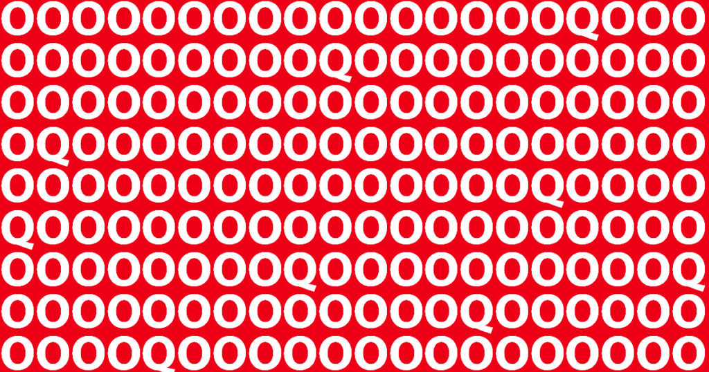 Here is a visually stimulating puzzle that’s designed to trick your vision. Focus on the tricky graphic ahead and let us know what you think. Amongst all the letter O’s, we’re in search of the Qs. HINT: there are more than just a few so please search well.