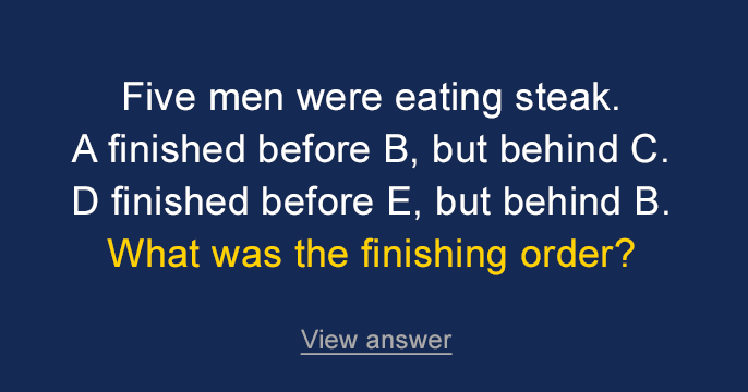The solution is C-A-B-D-E. How close did you come to this answer? Let us know in the comments section and don’t forget to SHARE the article with others too.