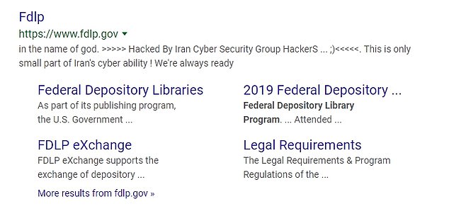 The hacked government website was the Federal Depository Library Program which went offline shortly after the hackers left behind a chilling message saying: