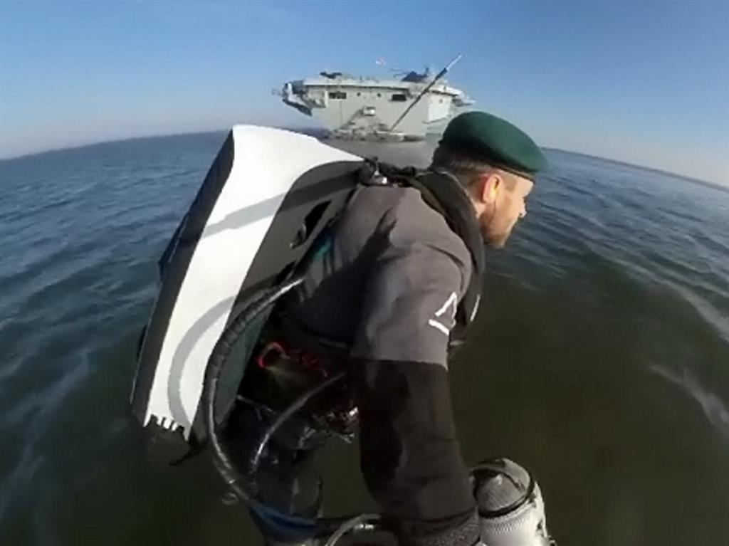 Richard, who’s a former Royal Marines Reservist, showcased his invention by flying around the Royal Navy’s latest aircraft carrier HMS Queen Elizabeth.